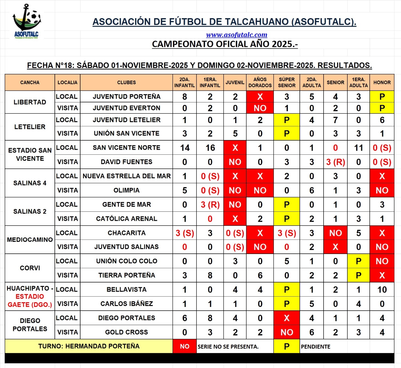Resultados de la Fecha N°18: Sábado 01 y Domingo 02-noviembre-25.