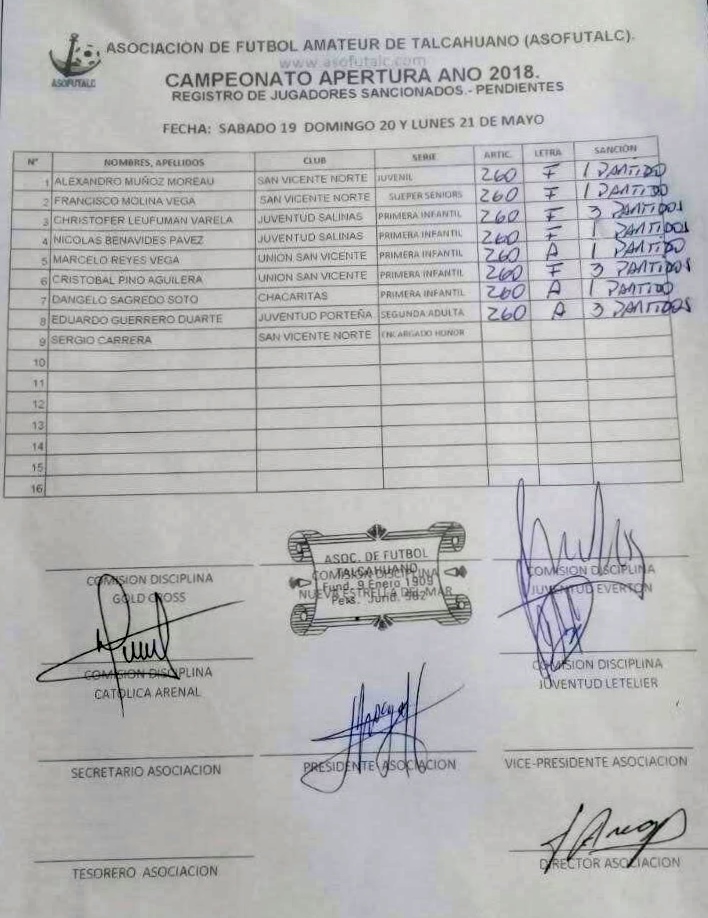 | 17 | DAVID FUENTES | 18 | CHACARITA | ||