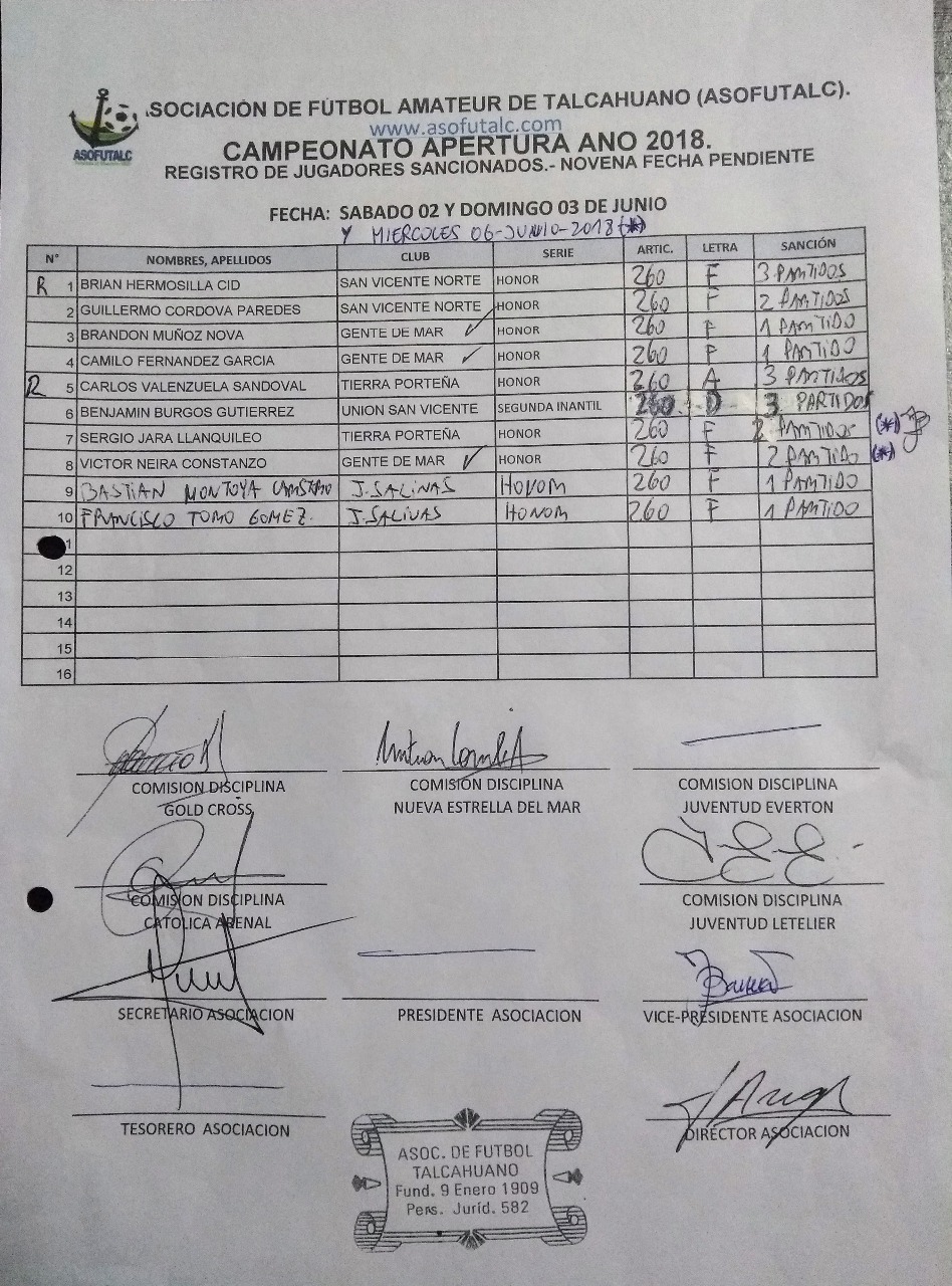 13) ÚLTIMA FECHA, N°10, SABADO 16-JUNIO-2018 Y DOMINGO 17-JUNIO-2018.