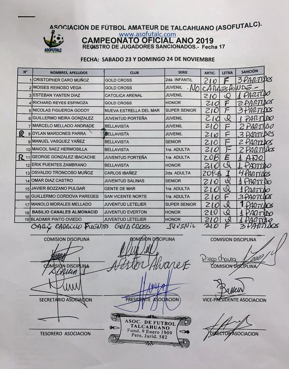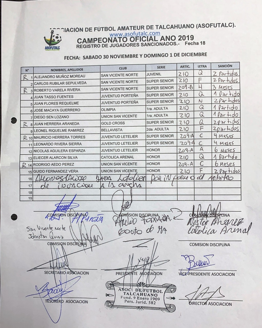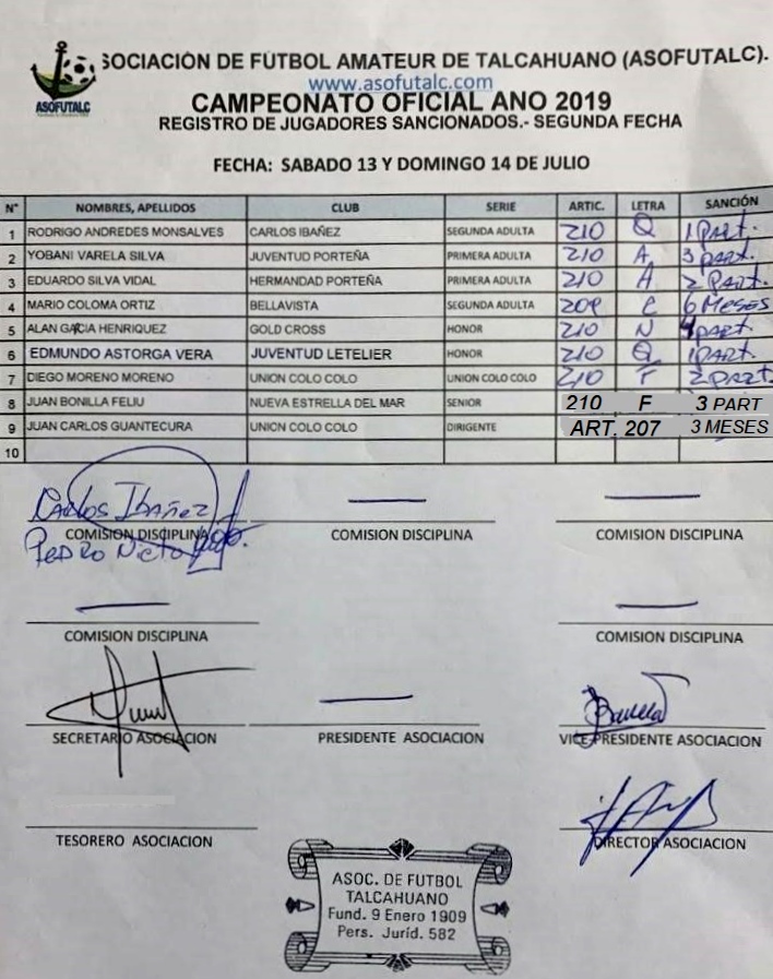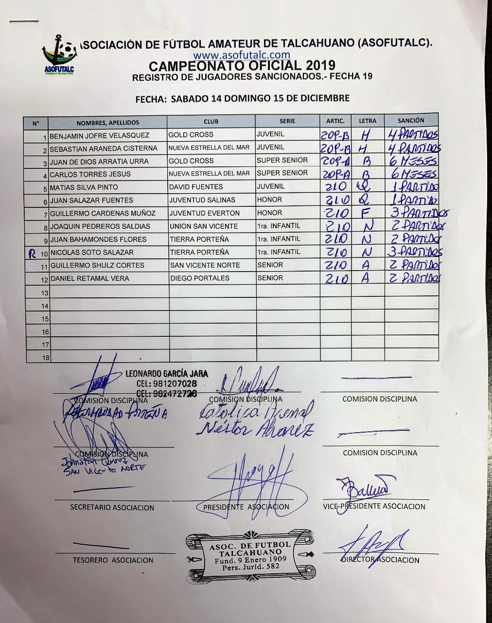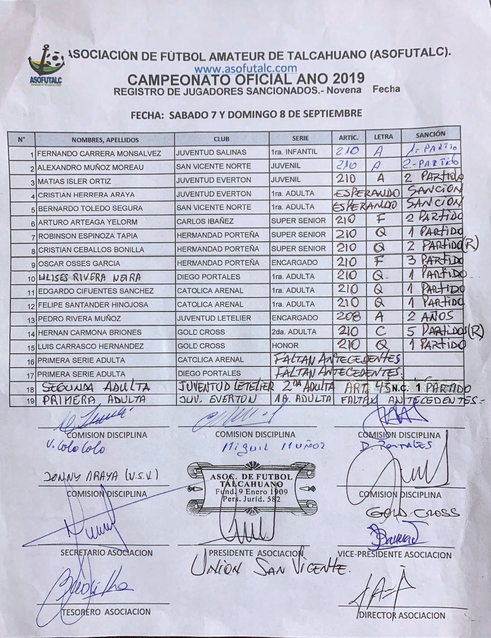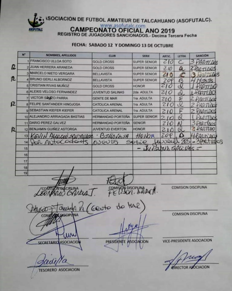 COMISIÓN DISCIPLINA FECHAS N°12 A LA N°19: