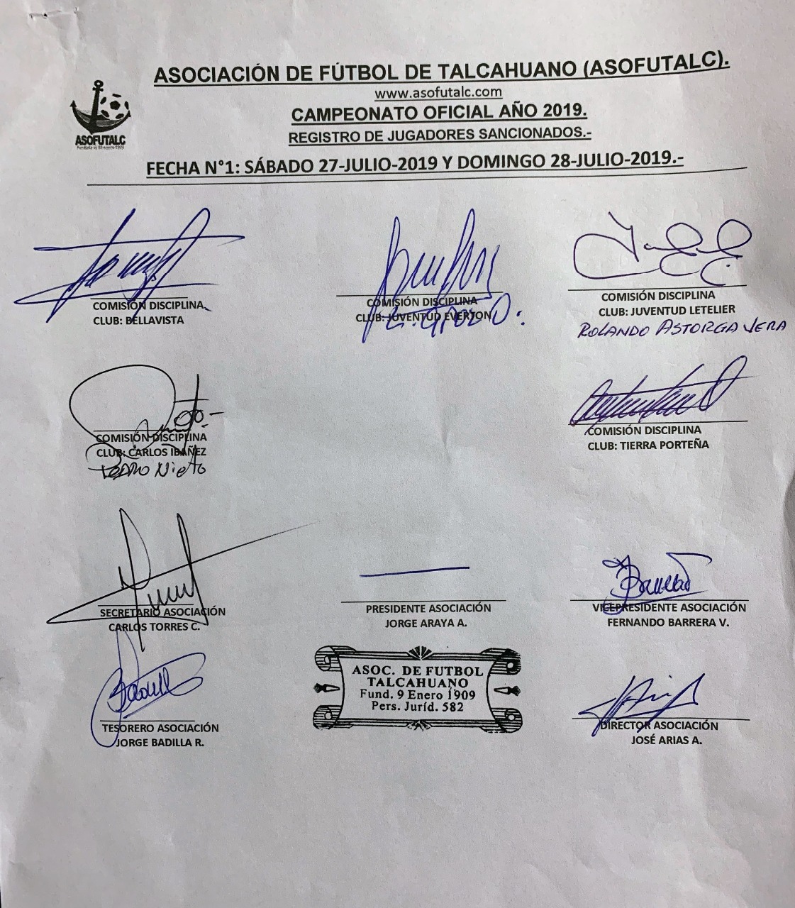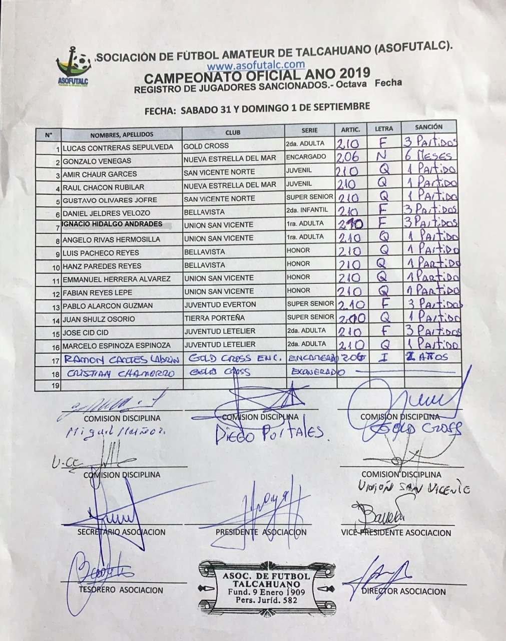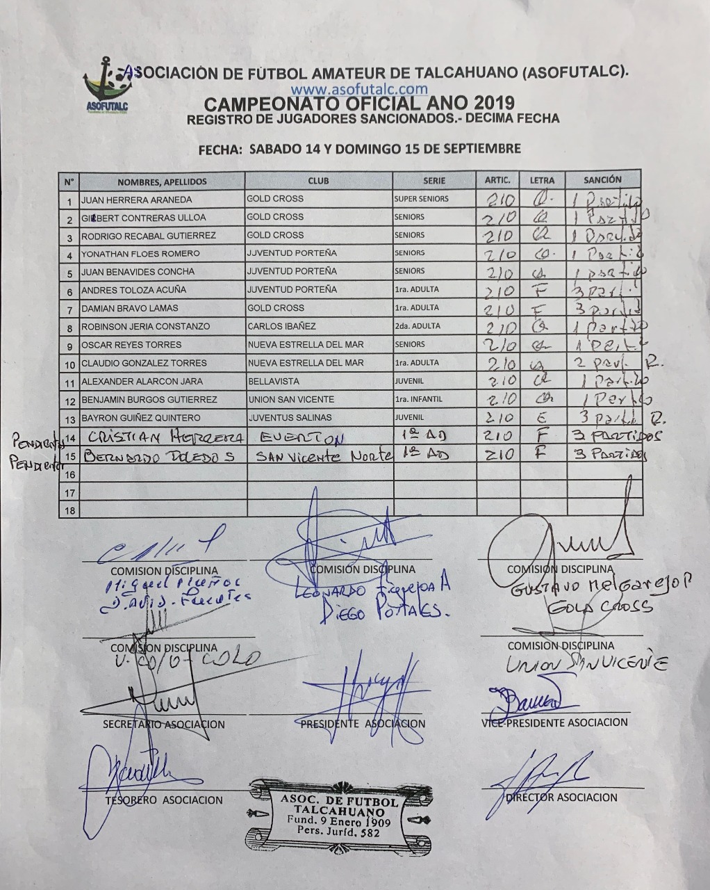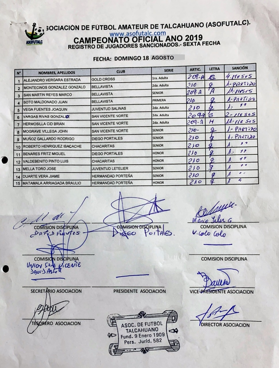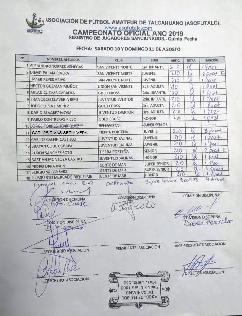 COMISIÓN DISCIPLINA FECHAS N°12 A LA N°19: