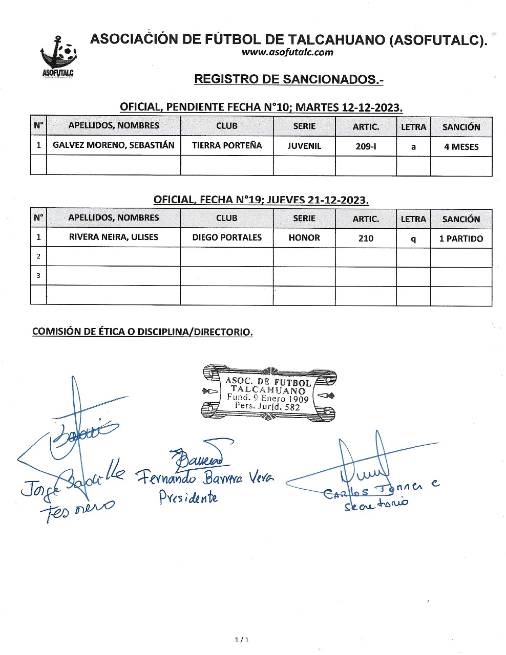 SANCIONADOS CAMPEONATO OFICIAL AÑO 2023.-