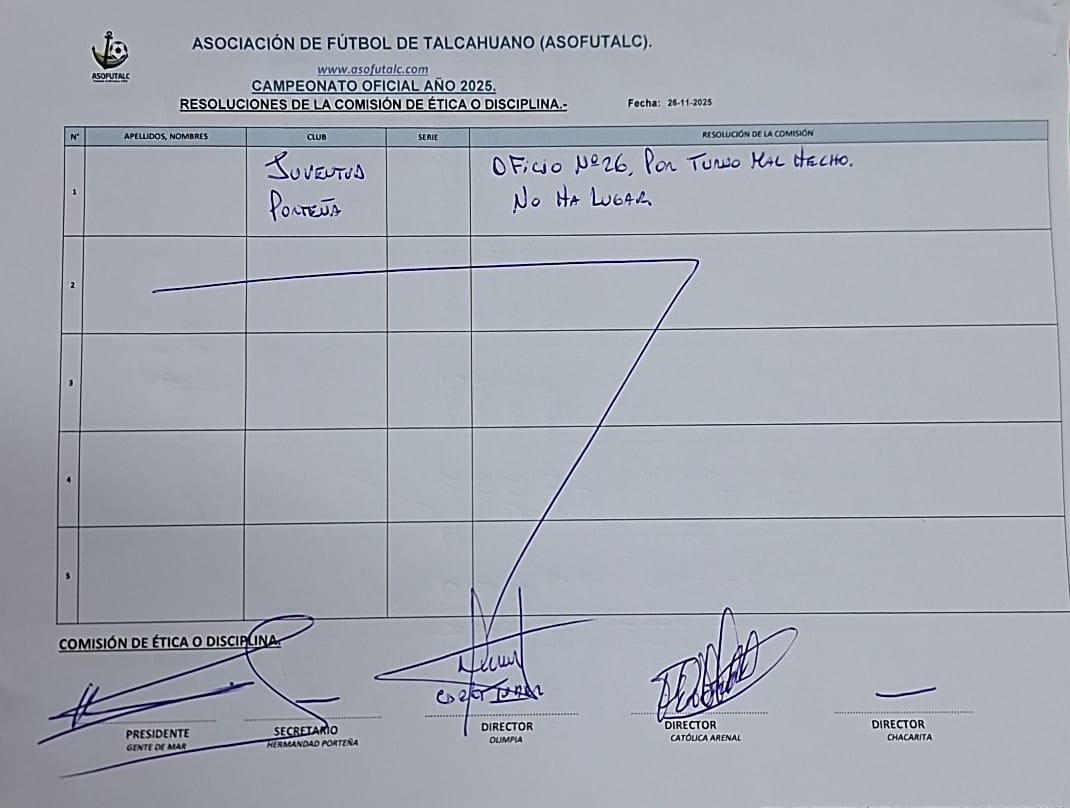 1.1) Fecha N°1; Resolución partido 1era. Adulta entre David Fuentes y Hermandad Porteña del domingo 29-junio-25.