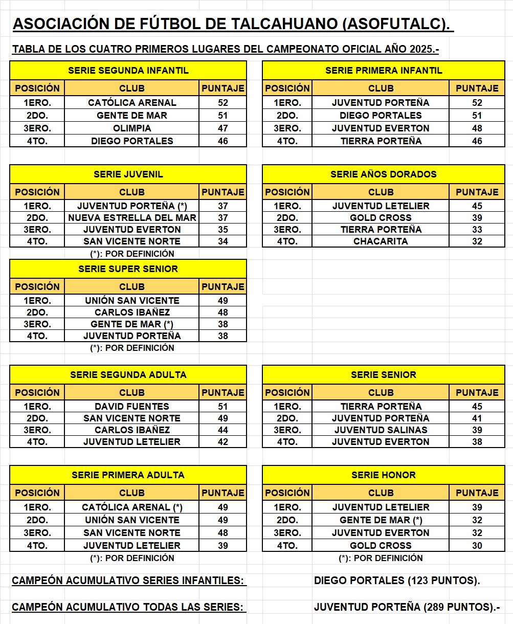 TABLAS DE RESULTADOS Y PUNTAJES AL 27-12-2025.-